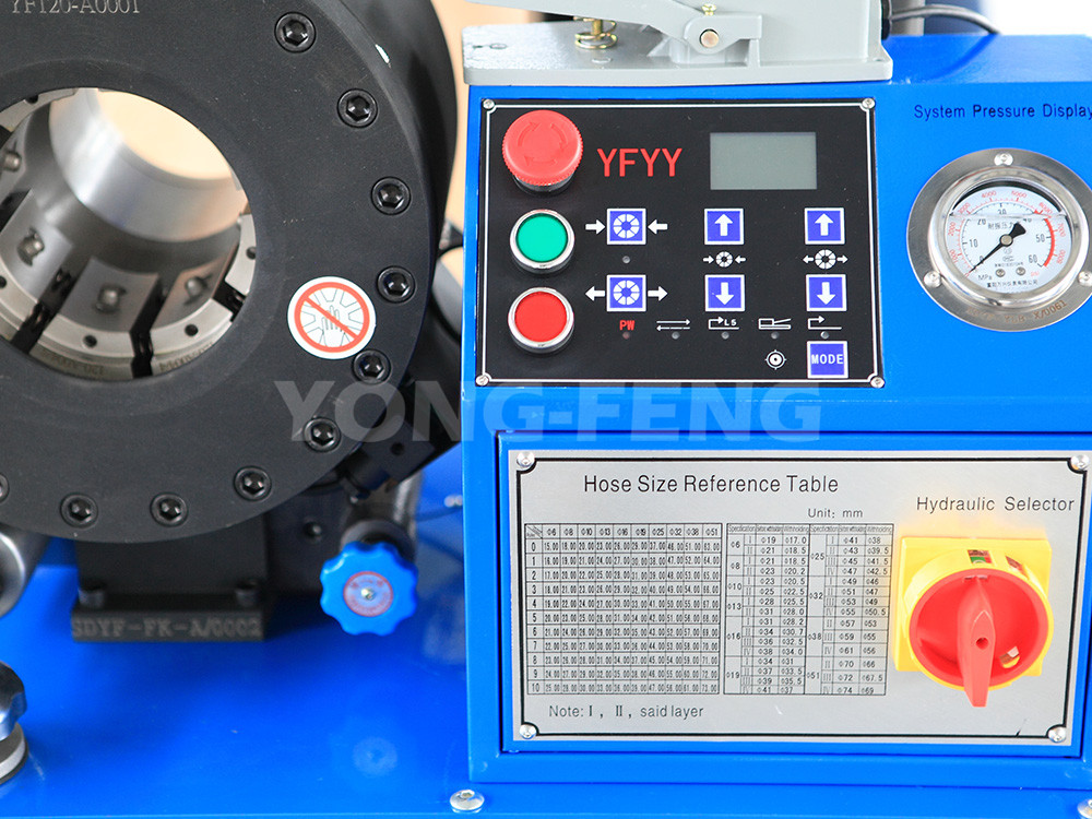 5. 按下扣壓按鈕執行扣壓操作,直至壓管機頭停止扣壓自動張開模具為止。