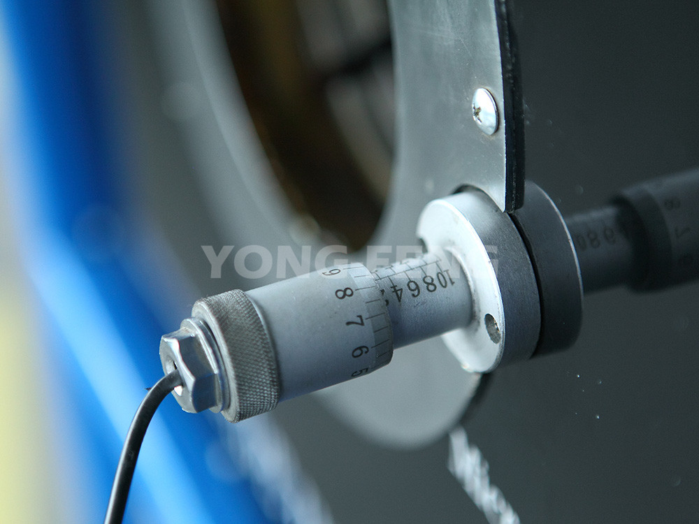 6. 取出扣壓好的膠管總成,用游標卡尺檢測扣壓后的接頭外套外徑尺寸,如與參數表不符應微調千分尺刻度,直到下一根膠管扣壓符合要求為止。