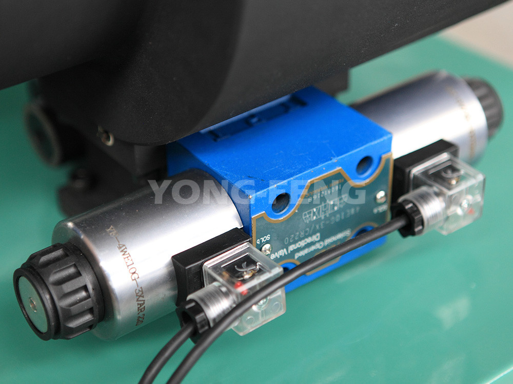 2、液壓系統由電 機、油泵、電磁閥、調壓閥及液壓閥組成了具有進退運動的雙液壓油路,而且在雙液壓油路中還增加離一個快速泄油閥油路,以達到更加快速 回位的目的,且速度可調、噪音和系統壓力降低。